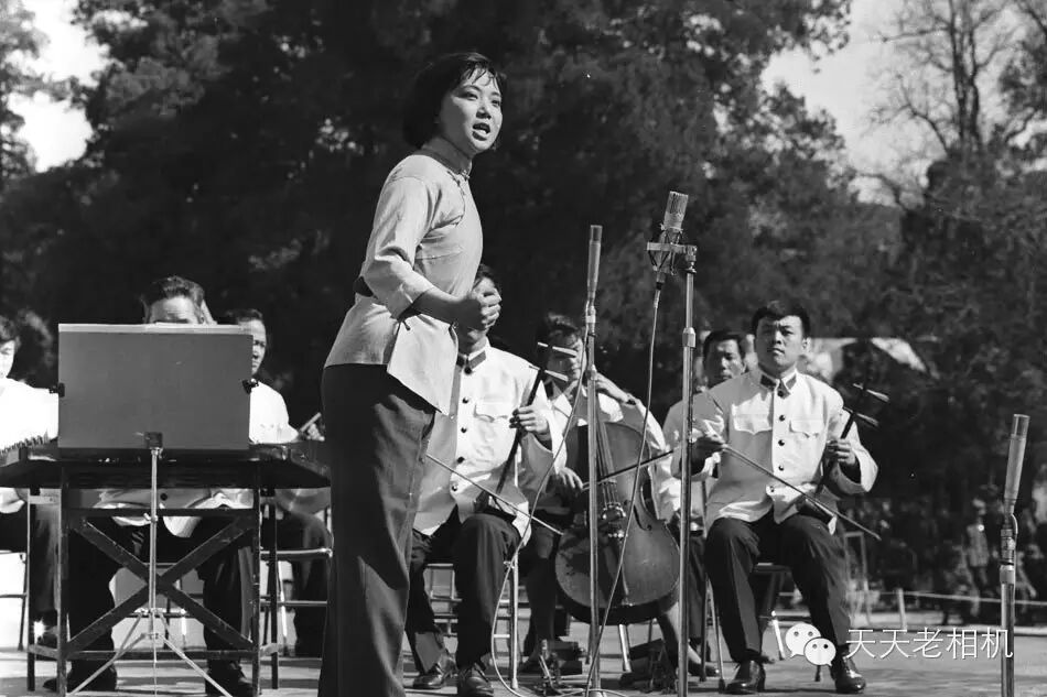 1974年10月1日,北京国庆节游园会上,在革命样板戏《杜鹃山》中饰演党代表柯湘的著名京剧演员杨春霞在清唱《杜鹃山》选段《家住安源》