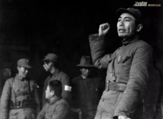 图为1939年2月,周恩来在新四军军部作报告。摄影:叶挺。