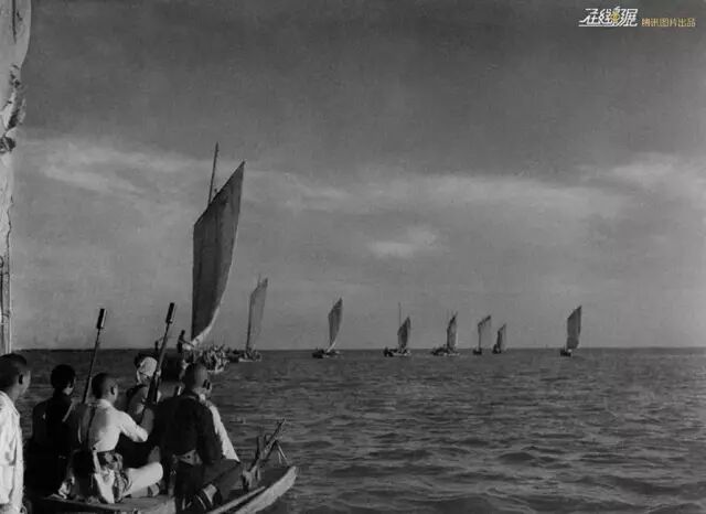 图为1944年,渤海之滨,渤海上的八路军部队。摄影:石少华。