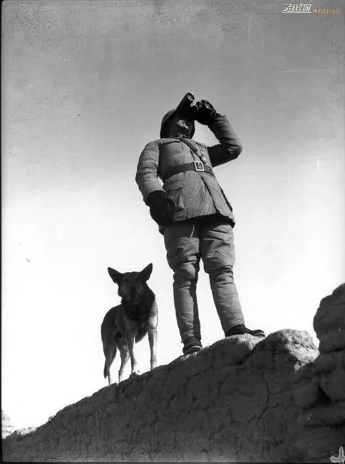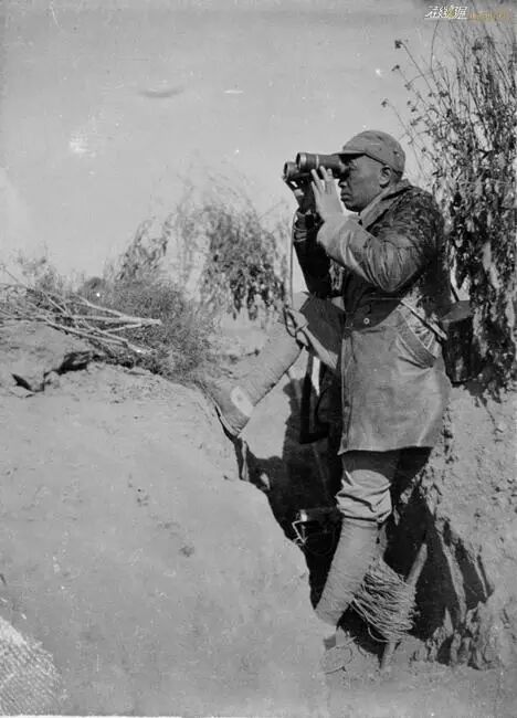 图为1936年,在前线瞭望的军人。摄影:方大曾。
