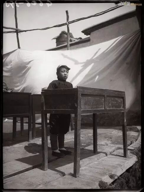 图为1942年,平山县儿童团向参加志愿义务兵的48名自卫队员致敬。摄影:罗光达。