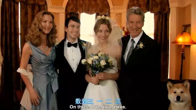 婚礼上,小哈奇使劲的将脖子伸着、伸着,生怕片片中的全家福缺了一个它。