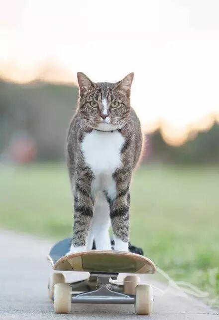 这只萌猫叫Didga,来自澳大利亚,是主人Robert Dollwet从收容所领养来的猫。Robert是一名优秀的动物行为训练师,Didga在他的照顾和训练下,爱上了滑板、冲浪等运动,过上了不一样的喵生!