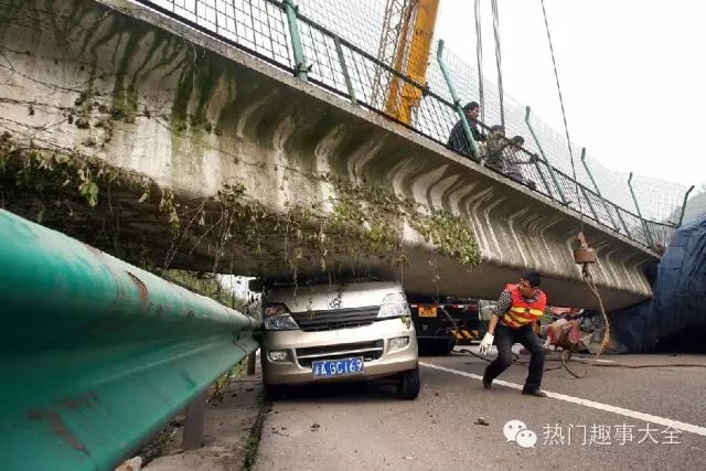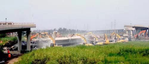 津晋高速公路匝道桥坍塌事故现场,不等你拆,我自己先拆了。