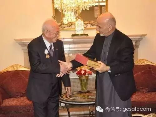车洪才先生接受阿富汗加尼总统授勋并向其赠送《普什图语汉语词典》