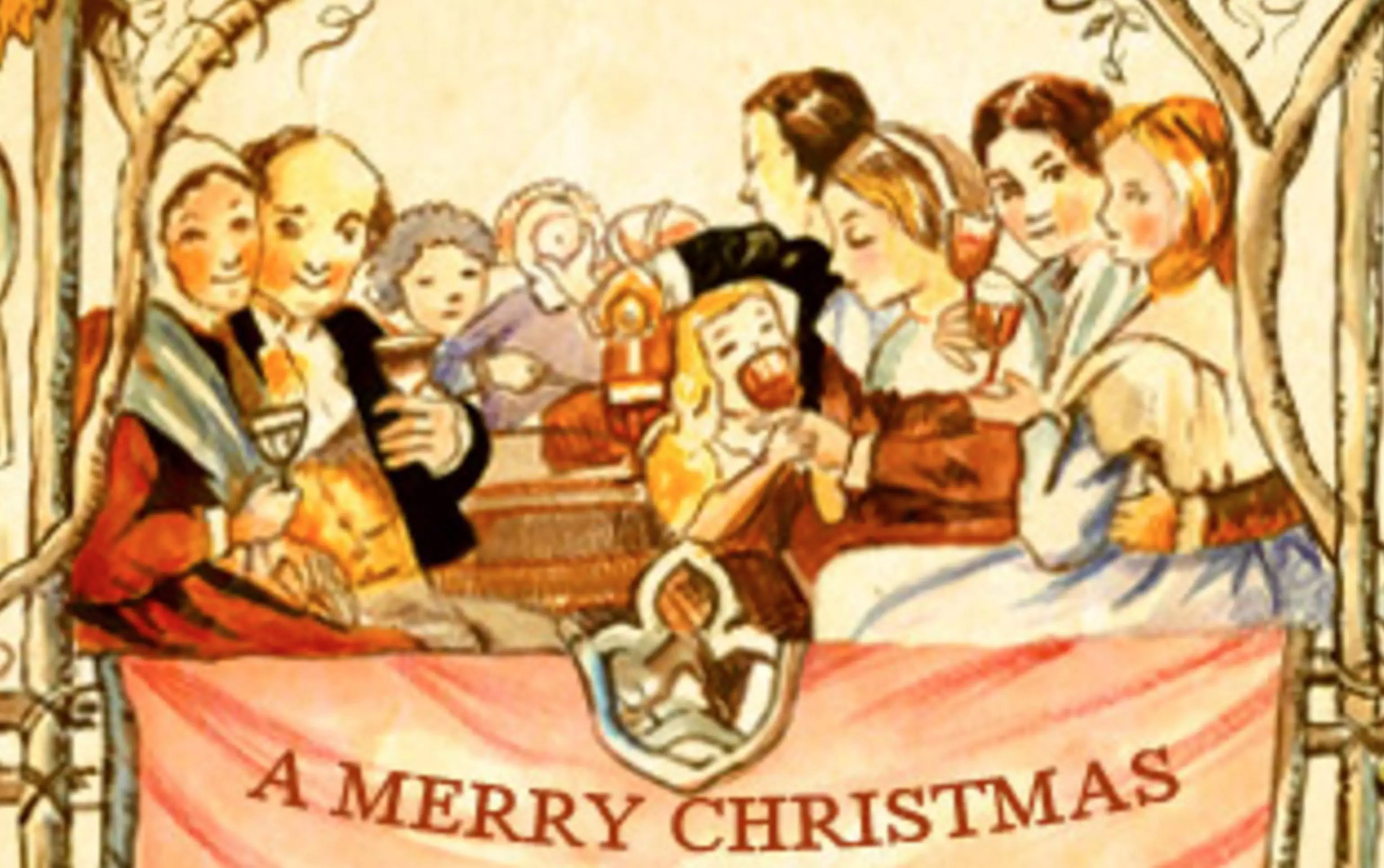 在1840年代推出的第一批Merry Christmas贺卡,场景中也是一家人饮酒作乐。