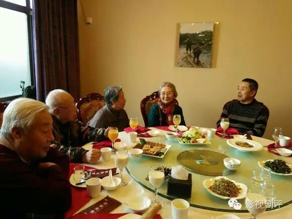 老艺术家们都落座了。他们之间也好久没有见面了,要过年了,彼此互相寒暄,所以场面甚是欢洽。我们拍个不停,他们也笑哈哈地配合。仔细一看,左边三个都是《地道战》的主演。还有《林海雪原》的男女主角,张勇手老师和袁霞老师一起演过《奇袭》。他们彼此述说着当年跑龙套的典故,那是每个演员的必修课。袁霞老师说她在《战上海》中跑过龙套,师伟老师在哪部片子跑龙套,可惜我没记住。张勇手老师说《奇袭》是在浙江奉化溪口蒋介石老家拍的,这个很令人感到新奇,他说那里的地形很像朝鲜。《林海雪原》是在东北拍的,当时住的地方都冷得不得了。师伟老师说当时拍和少剑波的戏,她加了点感情元素,但被导演否决了。我们听了都感觉可惜。霍德集老师说《狼牙山五壮士》是在狼牙山和北京郊外门头沟两个地方拍的。我问刘江老师别人拍正面角色很受欢迎,你一辈子演反面人物有没有受到什么影响?他笑着说,自己也在话剧舞台上演过十几年黄世仁呢。到了后来,人们一直喜欢他这个大反派