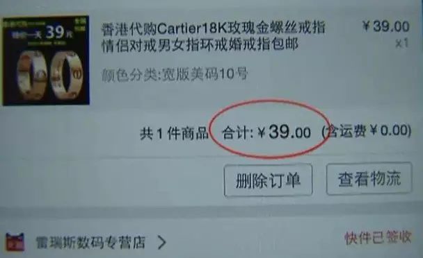 21、一男子投诉在淘宝花39元买了卡地亚戒指,怀疑买到假货