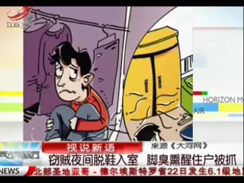 24、小偷入室盗窃,因怕有脚步声,脱下鞋子,脚太臭熏醒屋主。