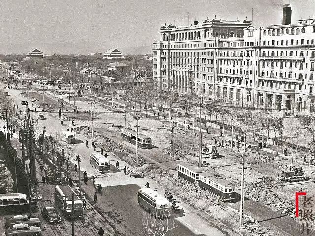 1958年,为了迎接建国十周年,开始扩建东西长安街,为适应阅兵时重型车辆通过的需要,加宽加厚了路面。(原载《老照片》第80辑)