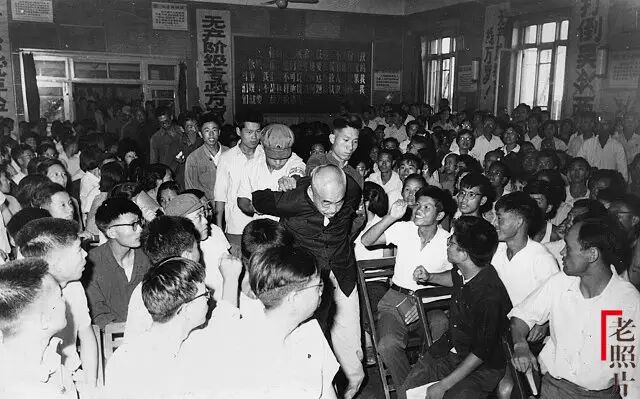1967年8月10日下午,在人民日报社五层礼堂中批斗彭德怀。(原载《老照片》第94辑)