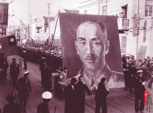 蒋介石画像赫然出现在游行队伍中。经过“训政”教育,对领袖的个人崇拜,于此可见一斑。(原载《老照片》第24辑)