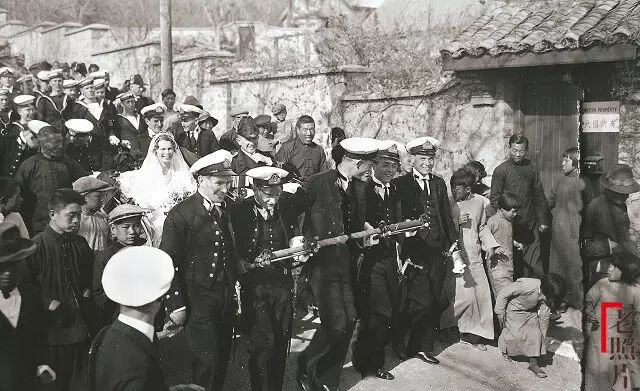 1938年4月,一位英国海军少校与妻子在威海刘公岛举办婚礼,场面宏大,可谓大操大办。(原载《老照片》第86辑)
