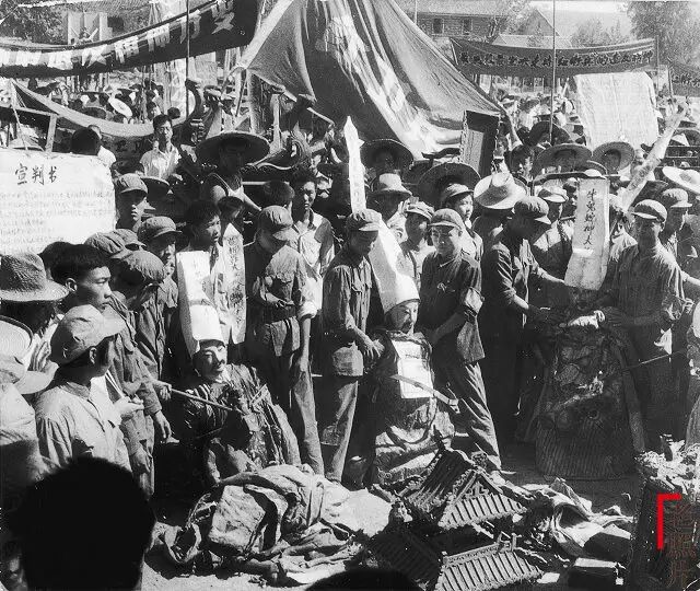 20世纪60年代,在“破四旧”运动中,浙江义乌各学校红卫兵在城区最广阔的义乌中学大操场“公审”城隍爷,历数封建迷信的种种陋习及危害。(原载《老照片》第54辑)