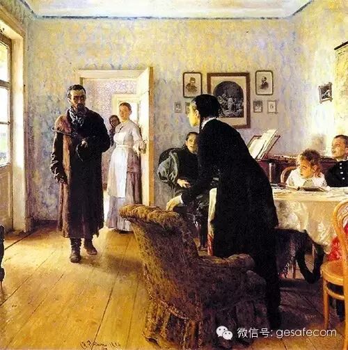 这是画家创作鼎盛时期的一幅作品。列宾抓住流放者跨进门坎的一瞬间,他及每个家庭成员的表情、行为向人们展示惊喜、意外和各种复杂的感情。如果我不把故事背景讲给大家的话,一定有人会把这幅作品的含义想偏……