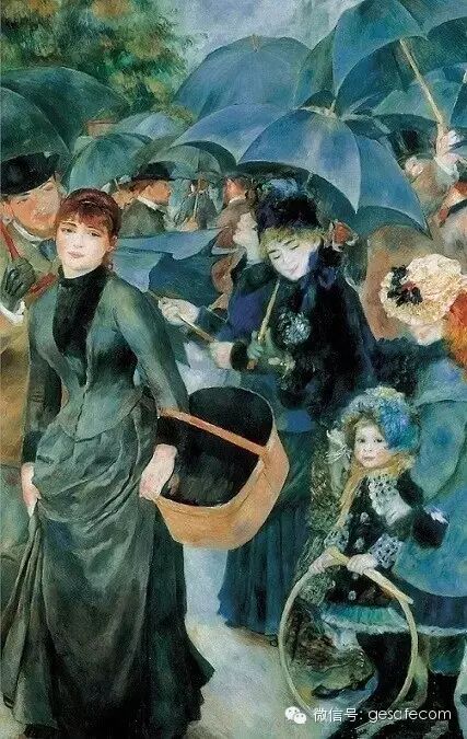 66、雷诺阿--伞,据说画面上左手提篮子的女人是以雷诺阿之妻阿林为模特的。