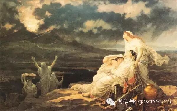 68、路易斯·埃克托尔·勒鲁--维苏威火山爆发,画家以强烈的明暗对比手法,刻画了维苏威火山爆发瞬间人们的惊恐与绝望。