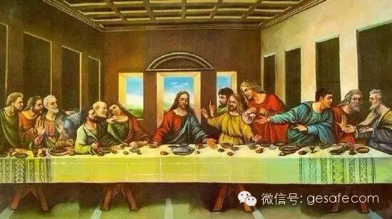 画面利用透视原理,使观众感觉房间随画面作了自然延伸。为了构图使图做得比正常就餐的距离更近,并且分成四组,在耶稣周围形成波浪状的层次。越靠近耶稣的门徒越显得激动。耶稣坐在正中间,他摊开双手镇定自若,和周围紧张的门徒形成鲜明的对比。耶稣背后的门外是祥和的外景,明亮的天空在他头上仿佛一道光环。他的双眼注视画外,仿佛看穿了世间的一切炎凉。