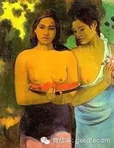 41、高更--塔希堤妇女,1891年作者只身来到南太平洋的塔希堤岛去领略岛上那种远离城市喧嚣的独特风情。1895年作者返回巴黎后创作了此画。