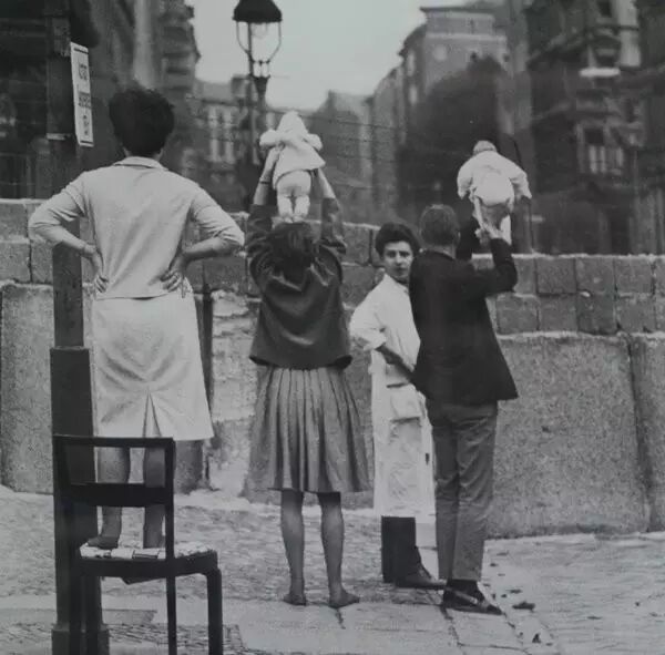 5.1961年,西柏林的人民抱着刚出生孩子给东柏林的父母看。
