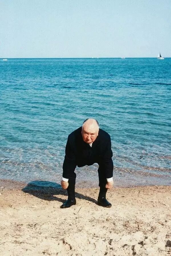 7.1936年,戛纳电影节,希区柯克在沙滩上。