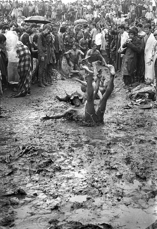 16.1969年,伍德斯托克音乐会的观众滑在泥里。