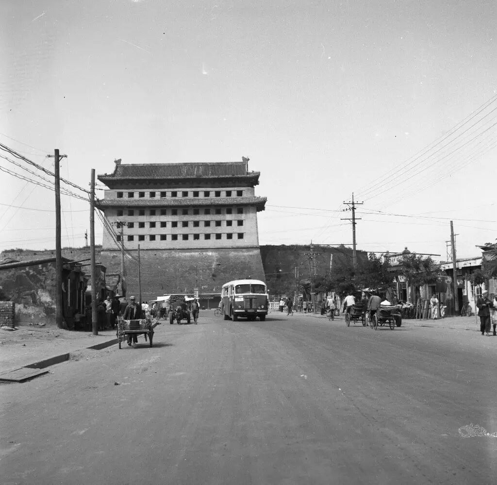 形制和朝阳门相似,它几经修葺改建,1965年城楼被拆除。如今,在原有位置上矗立的是中石油大楼。刘锦标说,北京好多城门楼都拆了,只能拍位置了,像东直门、朝阳门、德胜门、阜成门都是这种情况,“我们不能看到这些老城楼了,但好在我们可以触摸那些老照片。”