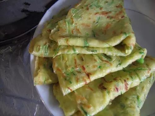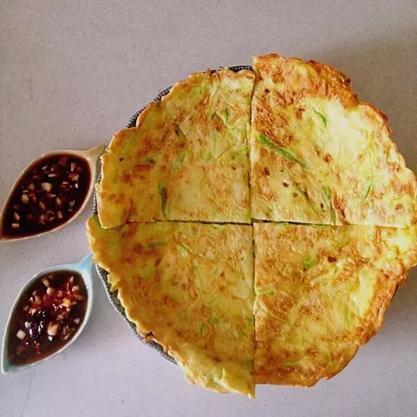 简单来说就是加了西葫芦丝的鸡蛋饼,据说正宗的糊塌子是不加盐,摊出来的饼要蘸着蒜末、酱油调成的汁儿一起吃,才能吃出西葫芦的清香味儿!!