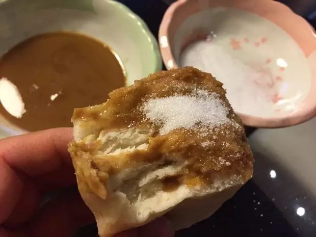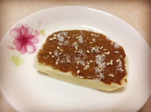 只要最普通的大白馒头,不加热也不作任何处理,只是切片,然后涂上厚厚的一层芝麻酱,再撒上点白糖,芝麻酱的香气在口腔里弥漫开来,白糖更是点睛一笔,原来凉馒头也这么让人回味无穷!!!