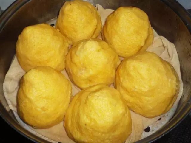 家里老人做的大菜团子,每次都蒸一大锅。金黄的玉米面包裹住足实的馅儿料,每家都有独门的调馅儿秘方,童年回忆里姥姥做的味道!!