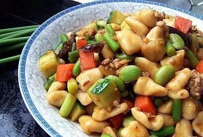 炒疙瘩是北京特有的一种面食小吃。据说已有近百年的历史,制作过程中煮炒兼用,颜色焦黄,吃起来又绵软又有劲,越嚼越香。