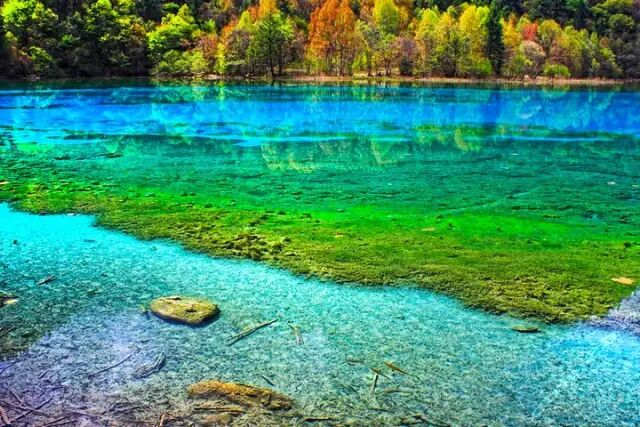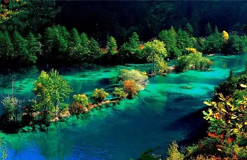 九寨沟被誉为“人间仙境”。位于四川省西北部岷山山脉南段的阿坝藏族羌族自治州九寨沟县漳扎镇境内,因沟内有树正、荷叶、则查洼等九个藏族村寨而得名。这里有古老的藏族村寨、石磨房、栈道、经幡,这里也有高耸的雪山、壮观的瀑布群、碧蓝澄澈的湖泊、神奇的钙华滩流以及苍翠的树林,而这里最有名的是水,水色黛兰、翠绿,清澈如明镜,斑斓生五彩,一年四季,一日之中都变幻无穷,有“九寨归来不看水”之说。