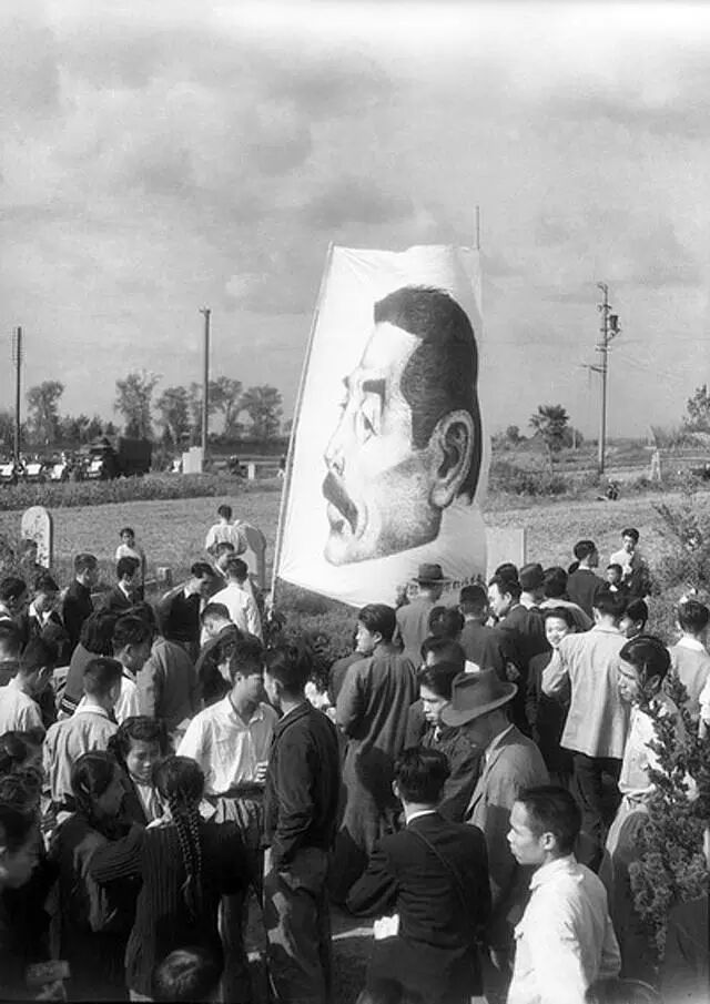 上图:1947年,自拍照。中间胸前挂相机的青年,即周海婴;本图:1946年,,上海万国公墓,鲁迅逝世10周年纪念。这一年,摁快门的周海婴不过是一个17岁的少年。