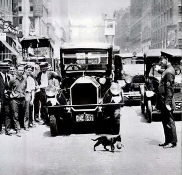 一只母猫带着小猫过马路,1925年