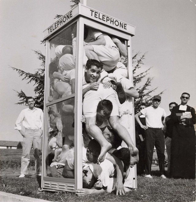 22个学生塞到一个电话亭里,打破了当时的世界纪录,1959年