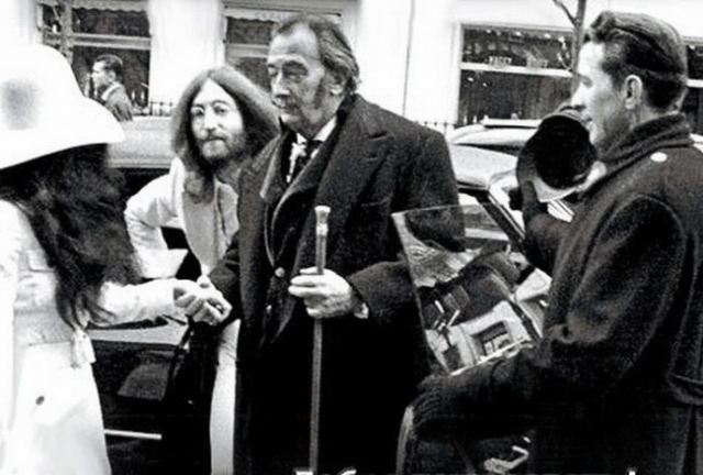 披头士成员约翰·列侬和萨尔瓦多·达利在巴黎,1969年