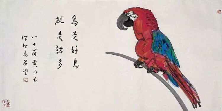 九十多岁,对于黄永玉来说,似乎是一件欢天喜地的事情。常有人感叹迟暮之年,但是,黄永玉似乎从不觉得迟暮之年有什么不好。黄永玉说预感自己的90岁应该会很忙,因为他不仅要画画,还要写自传。前不久他的《无愁河上的浪荡汉子》第二部出版,才刚写到少年时期就已经60多万字了。虽然年事已高,但黄永玉画画的速度依然很快。吃个午饭他就能画出一幅大作,他的灵感好像是喷涌而出的,而那份幽默感却凸显其中。他的画里常常配有各种幽默诙谐的话,有人质疑黄永玉的画浓墨重彩,不能算国画。他懒于回应,只开玩笑说谁再说他的画是国画,就要告他。