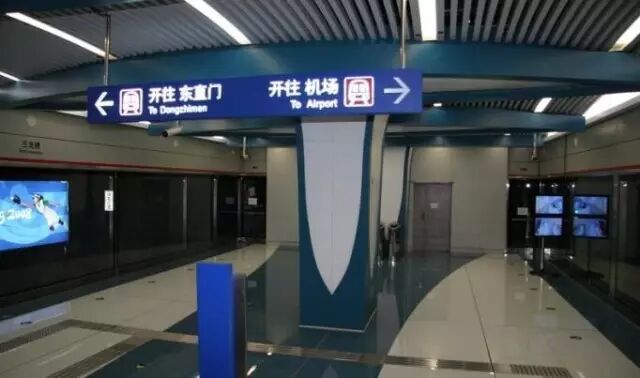地铁机场线共设4站:东直门、三元桥、3号航站楼、2号航站楼