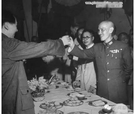 这张出自美国摄像师之手,毛卷起裤脚(滚边),身上没一支钢笔,少了点派头。而蒋的镜头感很好。