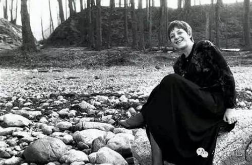 年轻时的默克尔,坐在河边的石头上,摆POSE,脚蹬皮靴,穿着黑色的长裙
