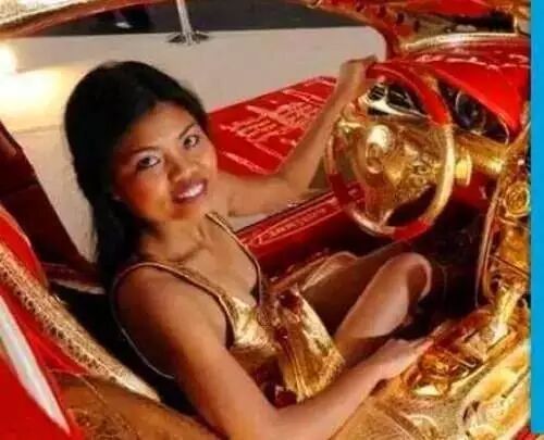 暗黑的皮肤加上暗黄色,将土豪的“土”发挥的淋漓尽致!这位是黑帮老大的小三吧?