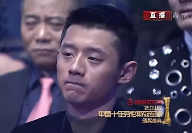 同为青岛老乡,任泪水在眼眶中打转的张继科。