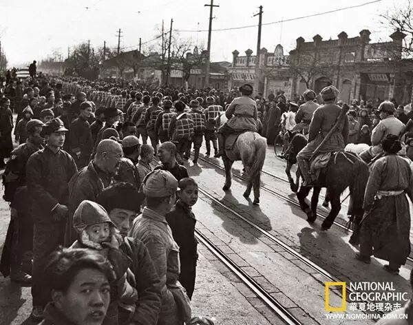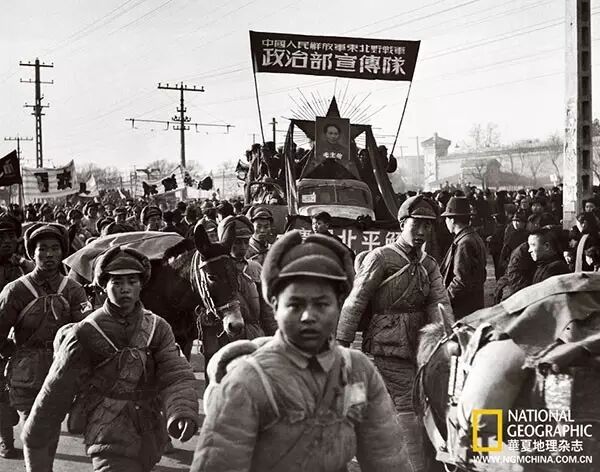 1949年2月,北平和平解放,入城部队宣传车行驶在大街上。高帆/摄。