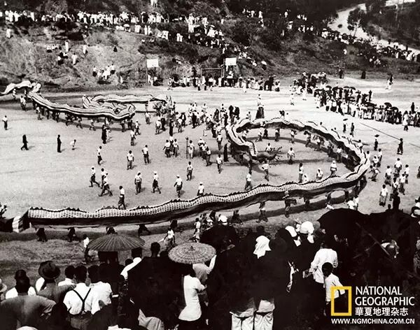 1937年10月10日,广州,舞龙表演庆祝着“双十节”,二十多年前这一天的辛亥革命推翻了清王朝。