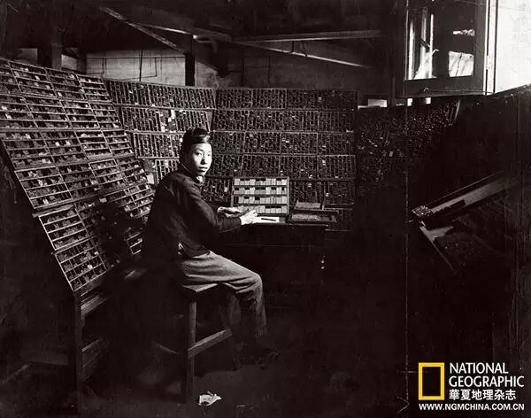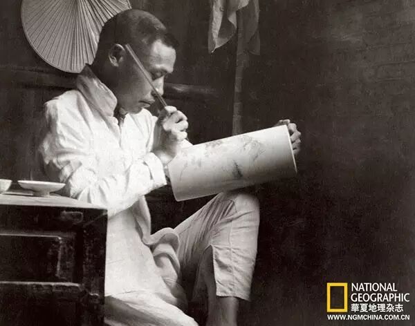 1927年,上海商业印刷厂,工人在刻写用来彩印的石版。