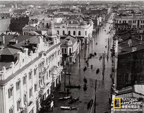 1932年8月,道外江堤决口,哈尔滨城区被淹。