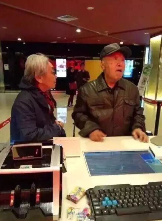 边说边拽着老爷爷走,老爷爷一把拉住她,转身对工作人员笑着说:“我其实根本不爱看这玩意儿,是这个小妹妹想看,给我来两张吧”。说完身旁这位70多岁的“小妹妹”害羞地笑了。