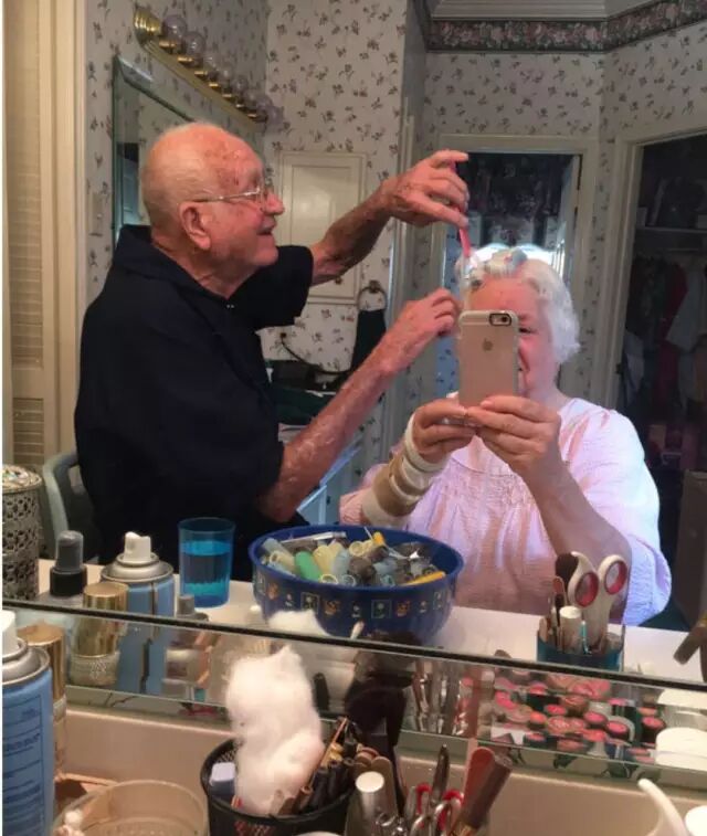 结果,老爷爷洗的过程中,老奶奶左手全程放在爷爷屁屁上。听说这个习惯,从结婚延续到现在。有一种爱叫:我的世界只允许你一人放肆。