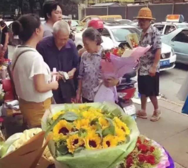 在贵州,当天是七夕节,一对老夫妻路过一家花店,老爷爷停下了脚步,想要买花,老奶奶嫌贵不让买,老爷爷不由分说,拿出皱皱巴巴的钱,给奶奶包了一大束玫瑰。