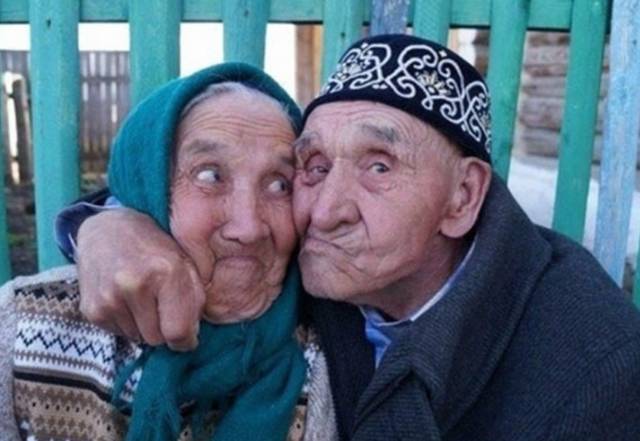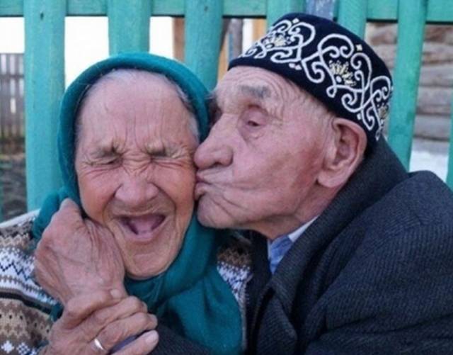 俄罗斯一个村庄,一对老夫妻结婚65周年,老爷爷决定拍一张合影留念,刚开始两人比较拘谨。